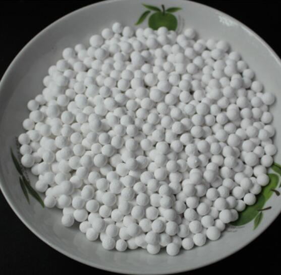 雙氧水用活性氧化鋁球為白色、球狀多孔性物質;無毒、無臭、無味、不溶于水、酯、烴、醇、等有機溶劑,具有在水和堿中不粉化、不變軟、澄清度高,使用壽命長,對蒽醌衍生物降解和再生能力強等優(yōu)點,是蒽醌法生產雙氧水的專用吸附劑。本產品除吸附工作液中的堿以外,對氫化降解物有很強的再生能力,可將氫化反應中增加的降解物轉化成有效蒽醌,保證了總有效蒽醌量的穩(wěn)定,有利于氧化反應的進行,并減少了蒽醌的添加量,節(jié)約了運行成本。同時,考慮到再生的需要,生產雙氧水用活性氧化鋁球保證了良好的機械性能,再生后的活性變化較小。